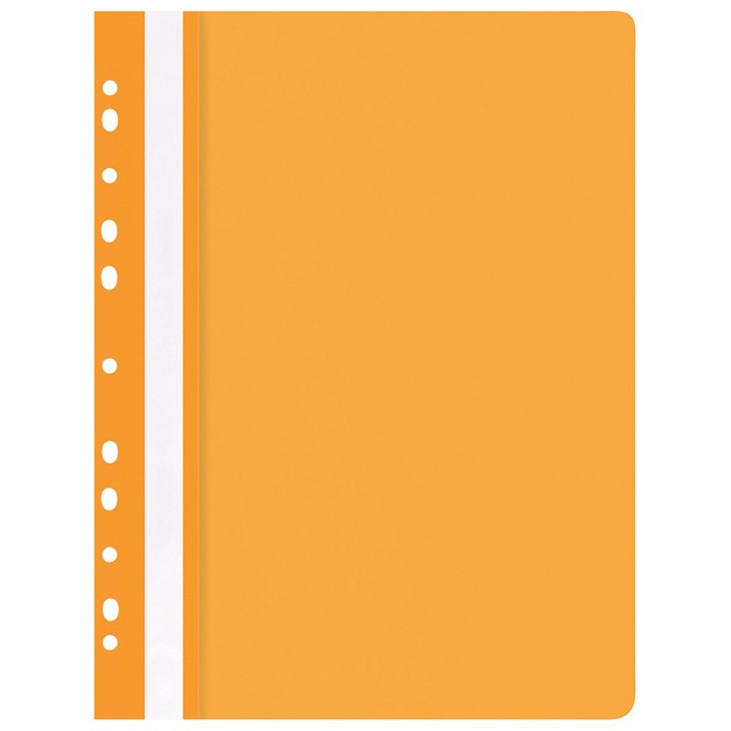 uložna 11 rupa; format: A4; PP-ekološki prihvatljiv polipropilen; prednja strana providna (100 mikrona), zadnja u boji (170 mikrona); zamenljiva, reverzibilna, naslovna traka pune dužine za laku identifikaciju; kapacitet: 200 listova (2cm); dimenzija: 237x310mm
