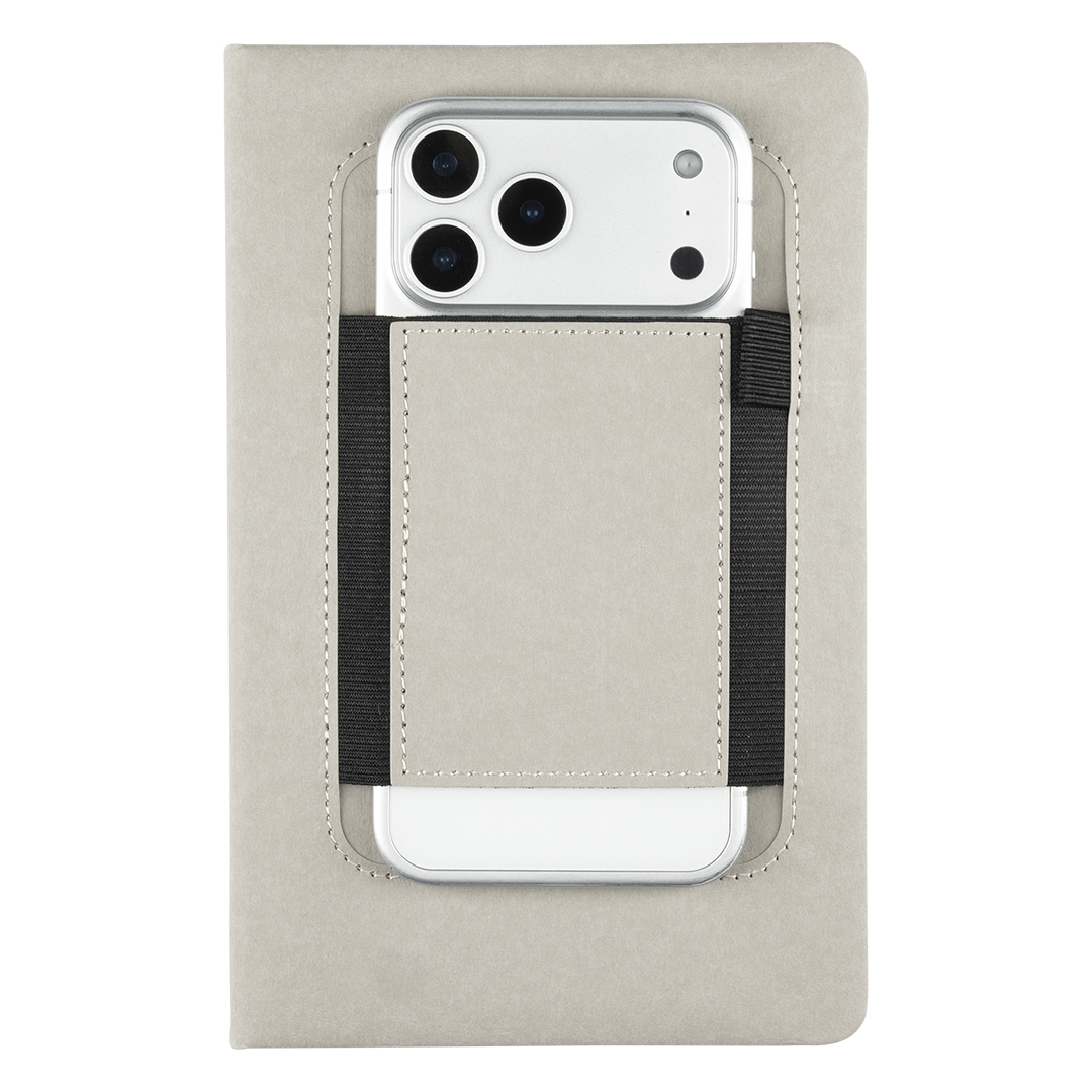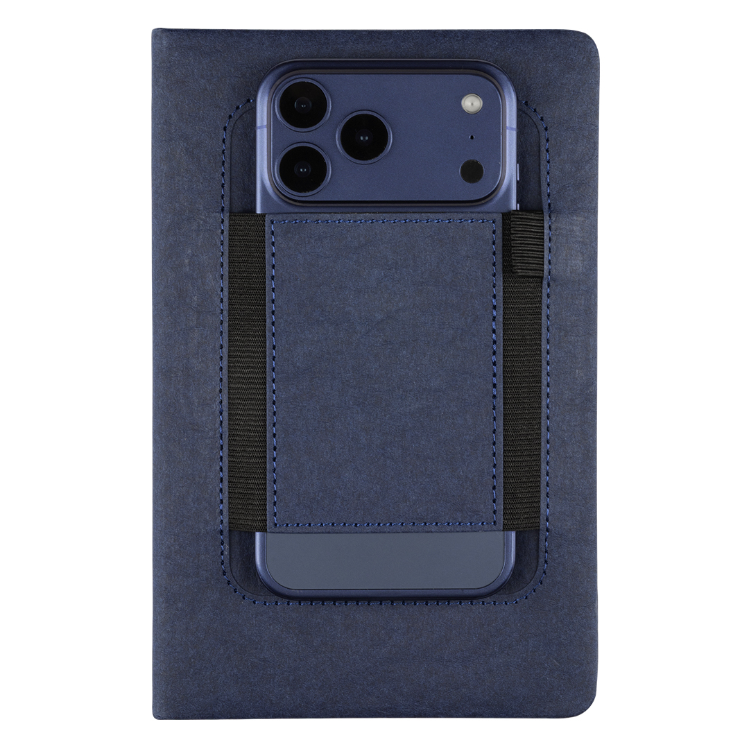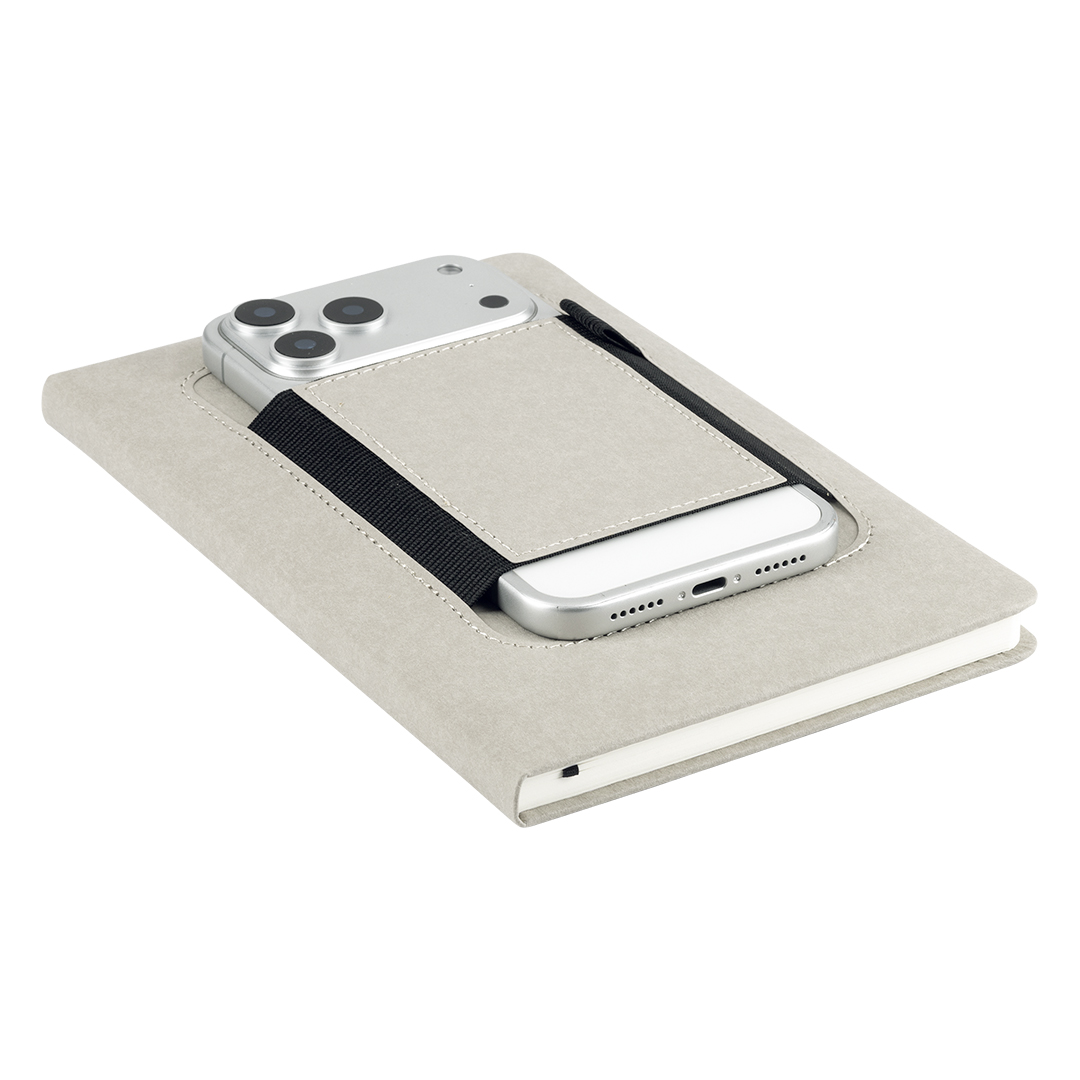 Notes sa zaobljenim ivicama, elastičnom trakom, držačem za olovku i džepom za mobilni telefon na prednjoj strani korice