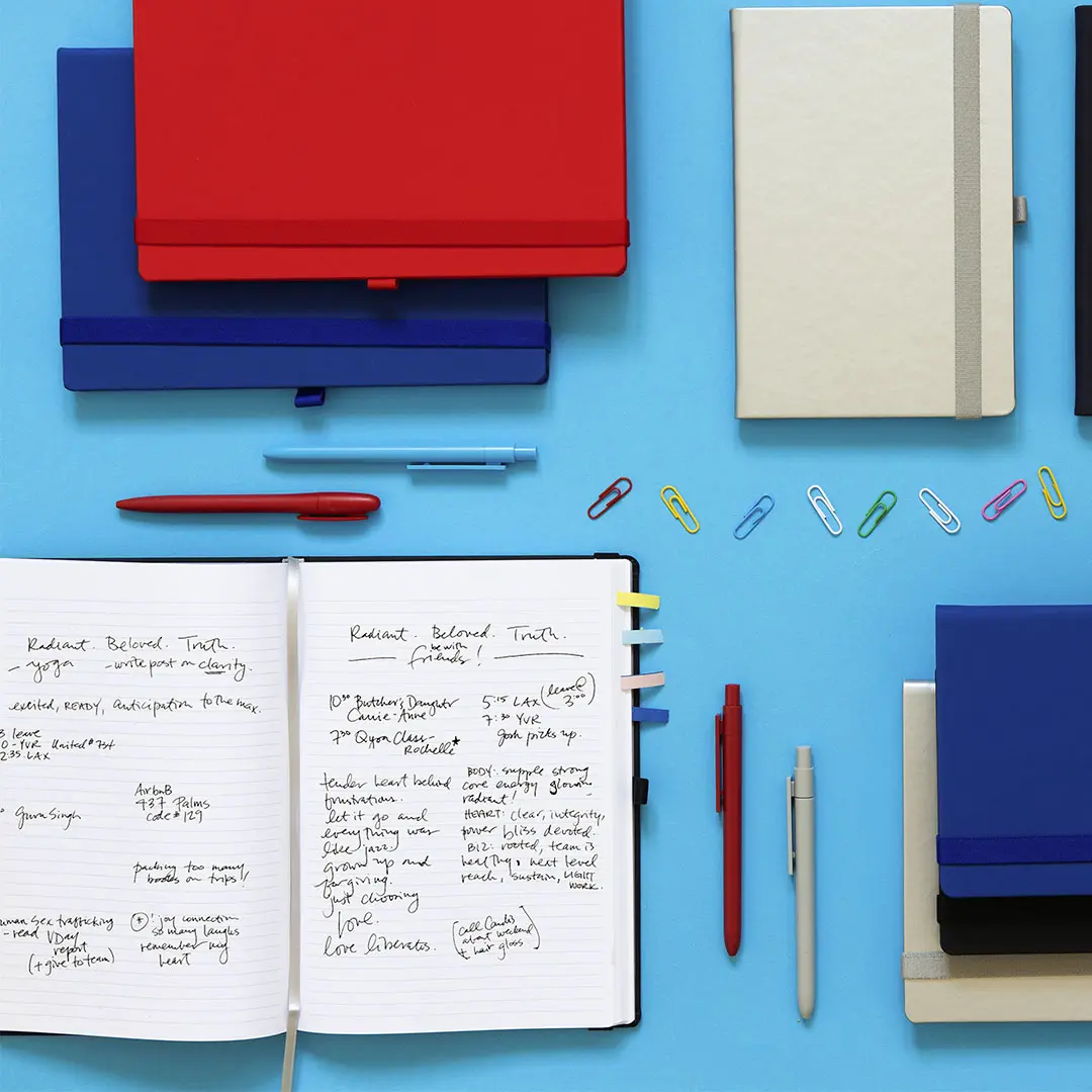 Notes sa zaobljenim ivicama, elastičnom trakom, držačem za olovku i džepom na unutrašnjoj strani zadnje korice