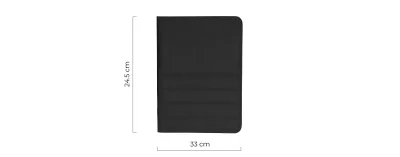 Blok za beleške: odštampan na belom ofsetnom 80 g/m2 papiru, 40 strana sa linijama Materijal za oblaganje korice: RPET tekstil Dimenzija: 24.5 x 33 x 3 cm Pakovanje: 20/1 Preporučena štampa: digitalna štampa