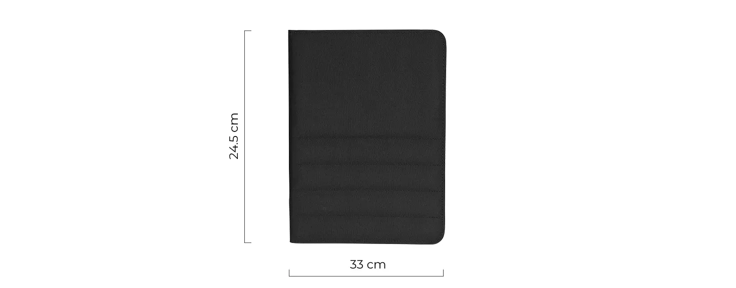 Portfolio sa blokom za beleške formata A4, namenjen poslovnoj i promotivnoj upotrebi. Tekstilna obloga u kombinaciji sa funkcionalnim rasporedom čini ga pogodnim za sastanke, konferencije i prezentacije. Opremljen je dodatnim džepovima za kartice, dokumenta i mobilni telefon, kao i držačem za olovku za praktičnu organizaciju. Korica je izrađena od RPET materijala (reciklirani PET), čime se ističe ekološki karakter proizvoda. Knjižni blok u linije sa 40 strana belog papira gramature 80 g/m² omogućava uredno beleženje.