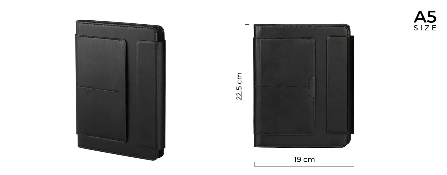 Portfolio sa notesom A5, kožnom oblogom, dodatnim džepovima za kartice i dokumenta i držačem za olovku