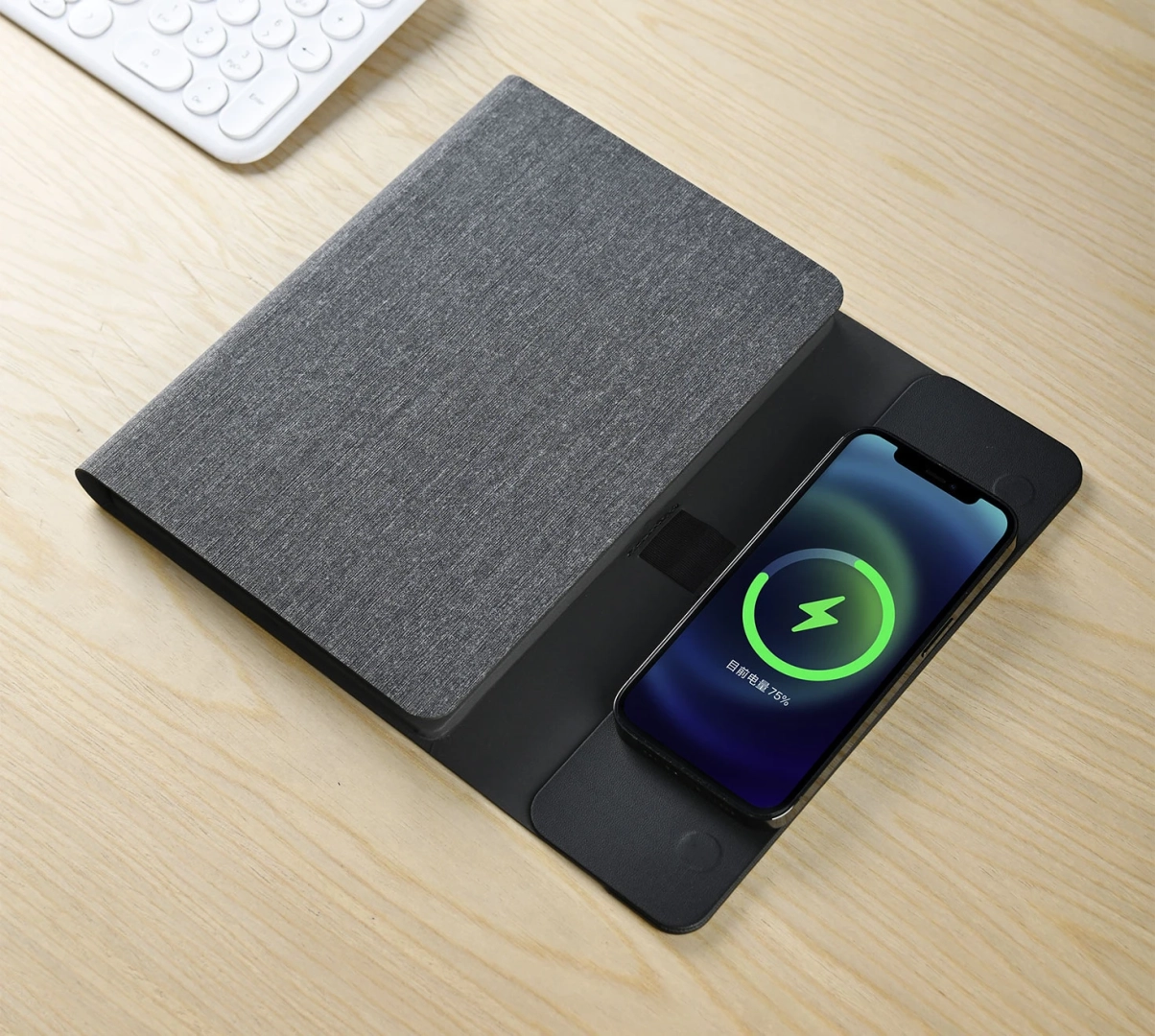 Portfolio sa notesom A5, pomoćnom baterijom 5.000 mAh, bežičnim punjačem za tri uređaja i magnetom FULTON 3IN1