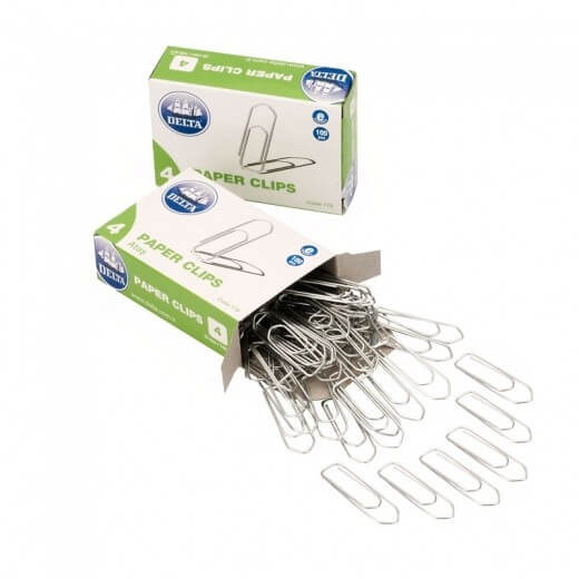 Kutija sa 100 metalnih spajalica 33mm dužine.