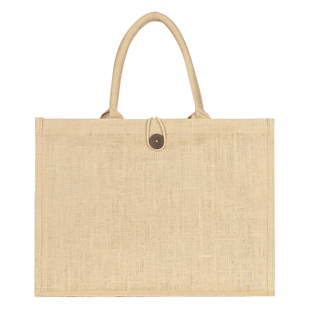 Torba od jute • Kratke ručke • Zatvaranje drvenim dugmetom • Prirodan eco izgled • Pogodna za sajmove, retail i letnje kampanje • OEKO-TEX sertifikat • FAIRTRADE sertifikat