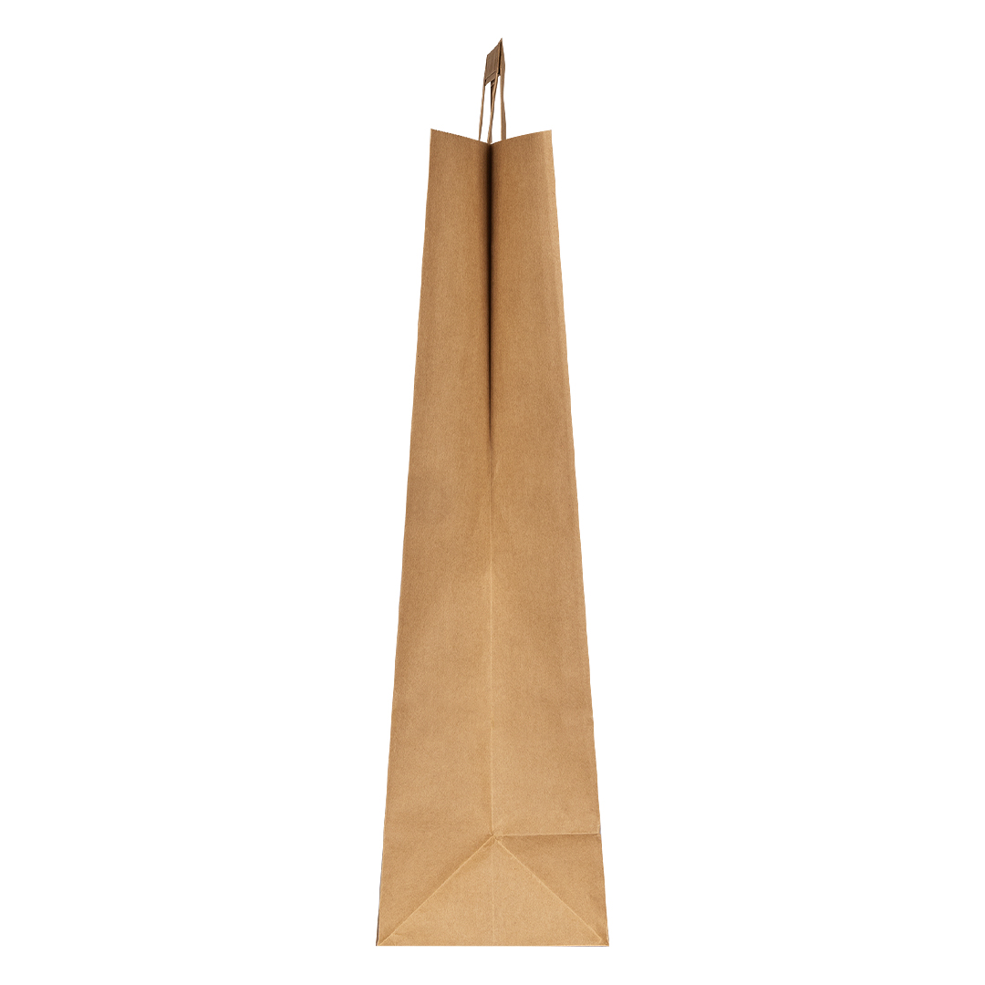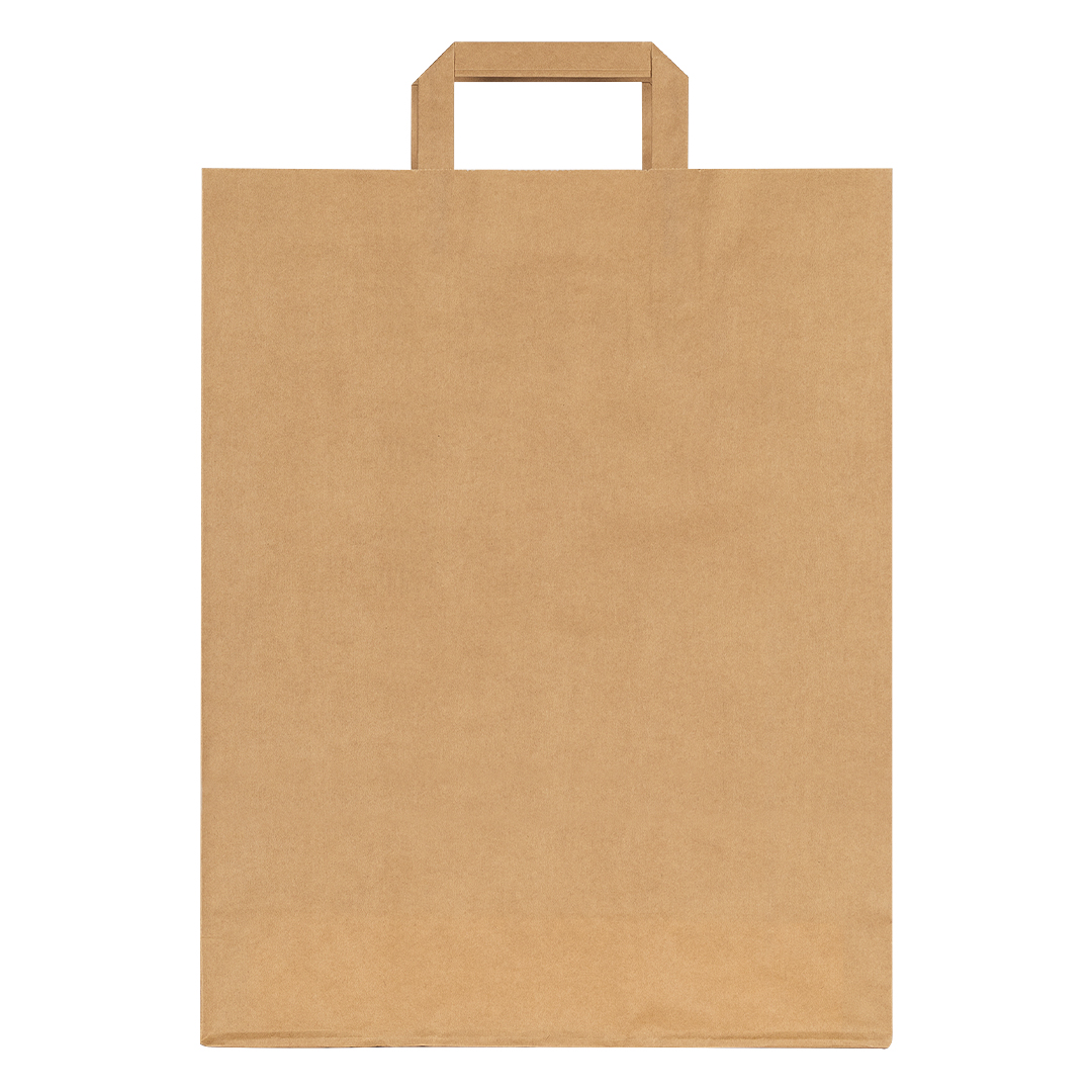 Papirna kesa za svakodnevnu upotrebu • Materijal: natron (kraft) papir • Gramatura: 80 g/m2 • Ravne papirne ručke • Ručke lepljene sa unutrašnje strane • Lagana i praktična konstrukcija • Pogodna za prodavnice, markete i prehrambenu industriju • Neutralan prirodan izgled • Velika površina za štampu