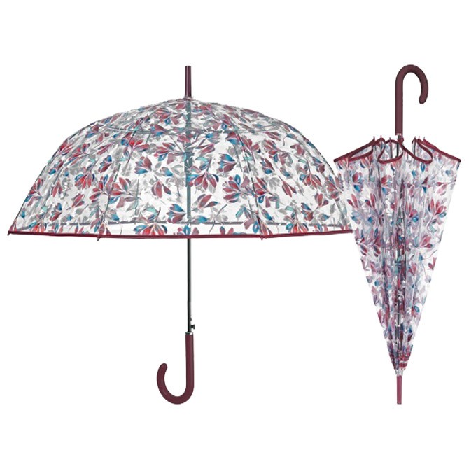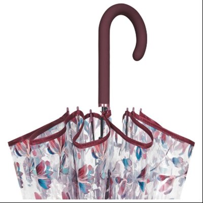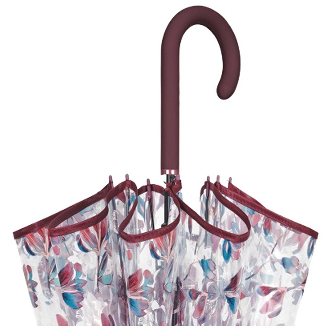Kišobran automatik s plastičnom ručkom Poe Time Perletti 26447 providan, dezen, bordo rub