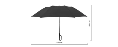 Sklopivi kišobran sa automatskim otvaranjem • Vetrootporni kišobran • 23" kišobran • 8 rebara • Materijal: 300T pongee • Dvodelni metalni štap (čelik) • Ram od stakloplastike • Vodoodbojni materijal (nivo 5) • Soft touch drška sa karabinjerom • Navlaka od istog materijala • Pogodno za brendiranje