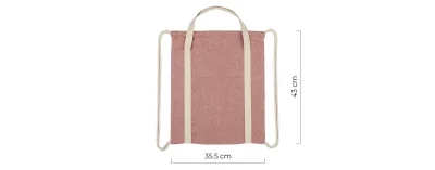 Materijal: reciklirani pamuk i reciklirani poliester Dimenzija: 43 x 35.5 cm Pakovanje: 50/25/5 Preporučena štampa: sito, preslikač
