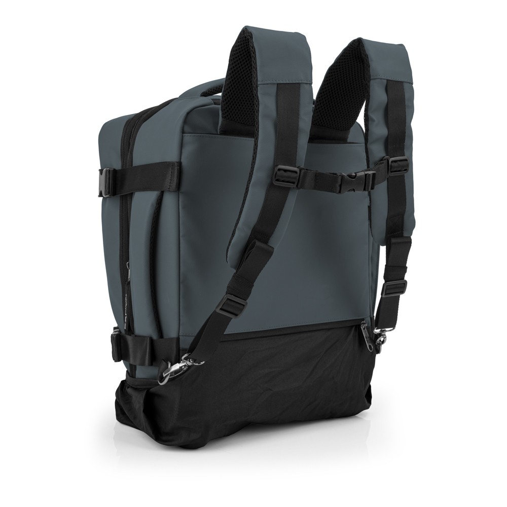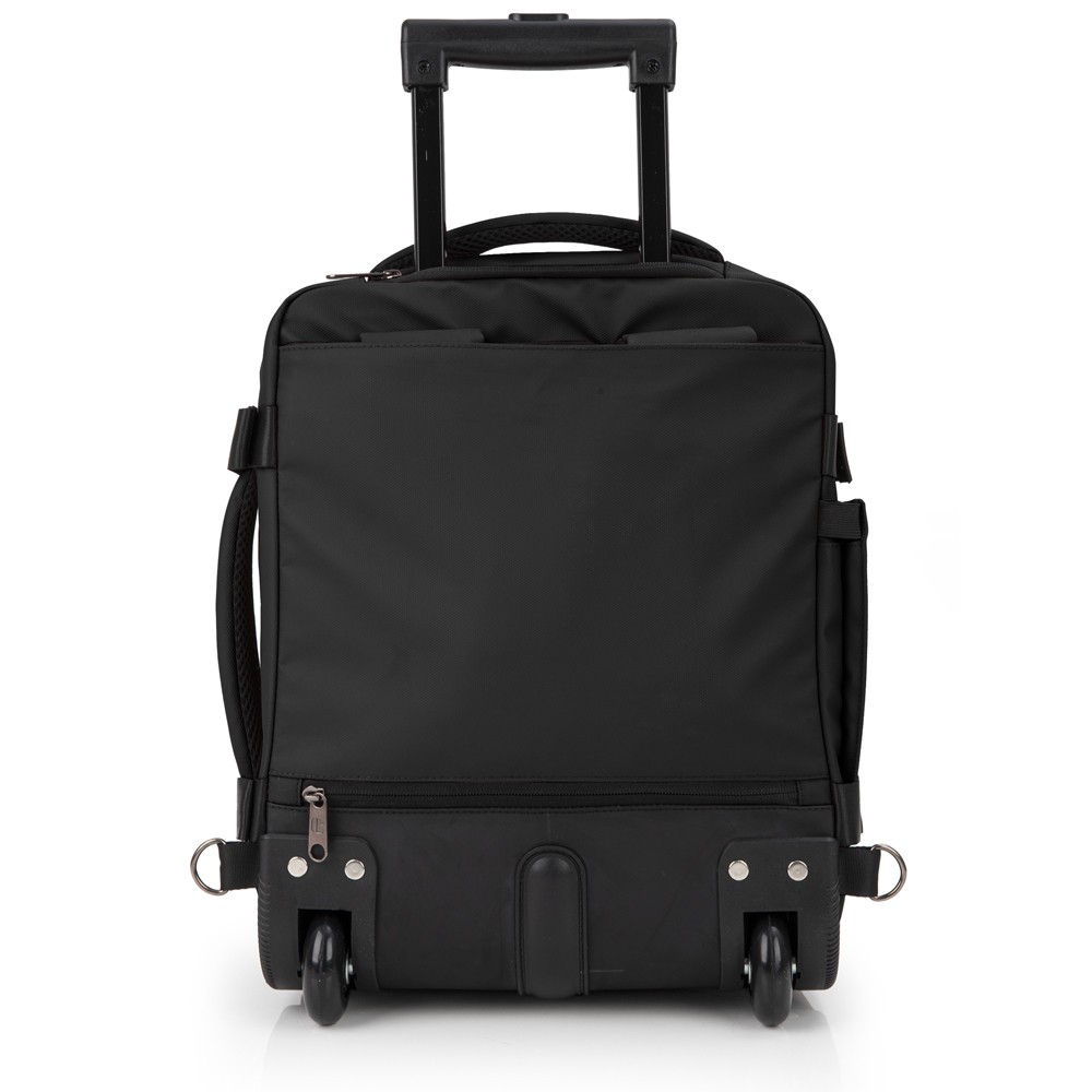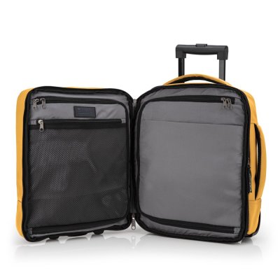 Najnoviji model iz kolekcije Canada, 2 u 1, torba sa točkićima/ranac, sa proširivim pregradama i kapacitetom od 24l. Apsolutno najbolje organizovan prtljag za low cost letove i kratka putovanja uopšte.Pogodan kao ručni prtljag ispod sedišta u avionu. Organizovan kao kofer, sa dva unutrašnja odeljka, od kojih jedan odgovara laptopu od 15,6 inča. Na prednjoj strani ranca je mala zip pregrada za sitnice. Ranac ima kvalitetne, ojačane ručke sa gornje i bočne strane, kao i čak četiri zatezača. Napravljen od poliestera obloženog smolom i sintetičke kože. Sastoji se od visokokvalitetne postave i unutrašnjeg organizatora. Visina sa produženom ručkom: 101 cm. Može se koristiti kao ranac ili kao kofer. Dostupan u 6 boja: crna, siva, tamno zelena, tamno plava, bordo i žuta.