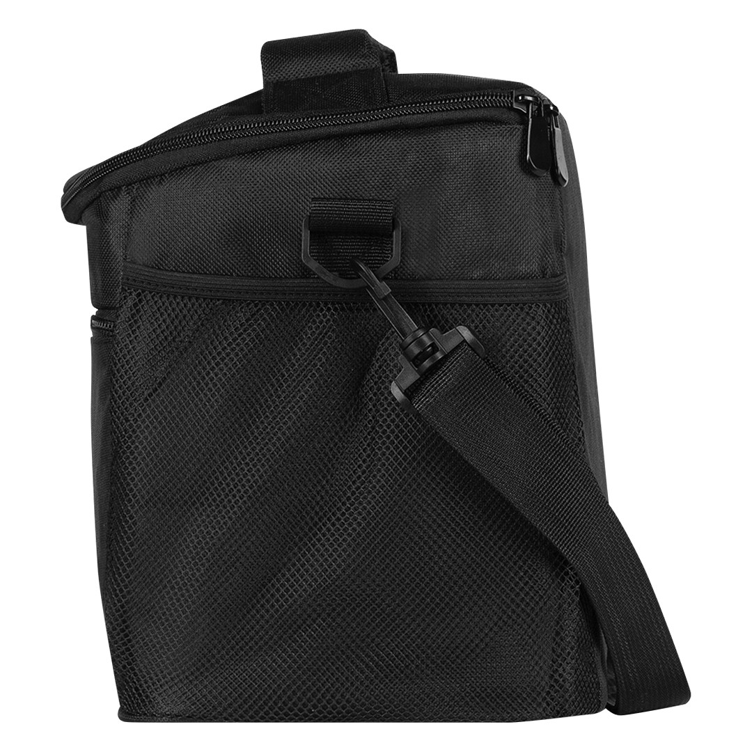 Rashladna torba za hranu i piće • Spoljašnji materijal: 600D poliester • Termo izolacija: EPE pena + PEVA aluminijumska obloga • Čvrsta box konstrukcija • Glavni odeljak sa gornjim rajsferšlusom • Prednji džep sa rajsferšlusom • Bočni mrežasti džep • Podesivi rameni kaiš • Kapacitet: 6 limenki (0,5 l) • Pogodna za rashladne uloške