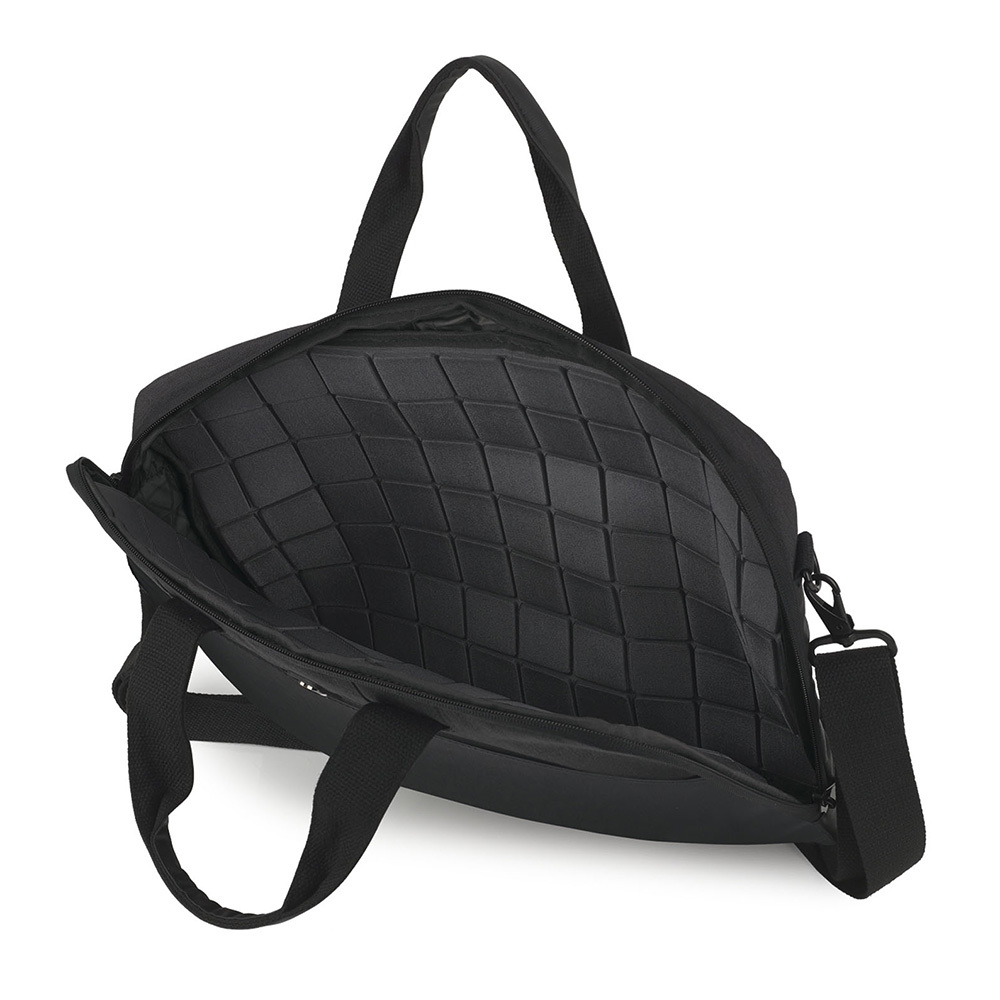 Praktična poslovna notebook vodonepropusna toba, uključujući i ziper. Predviđena je za prenosni računar do 15,6". Izrađena je od kombinacije najlona i veštačke kože. Unutrašnjost je obložena posebnim zaštitnim materijalom u obliku mozaika, savremenog izgleda. Dimenzije: 41x28x4 cm. Boja: crna.
