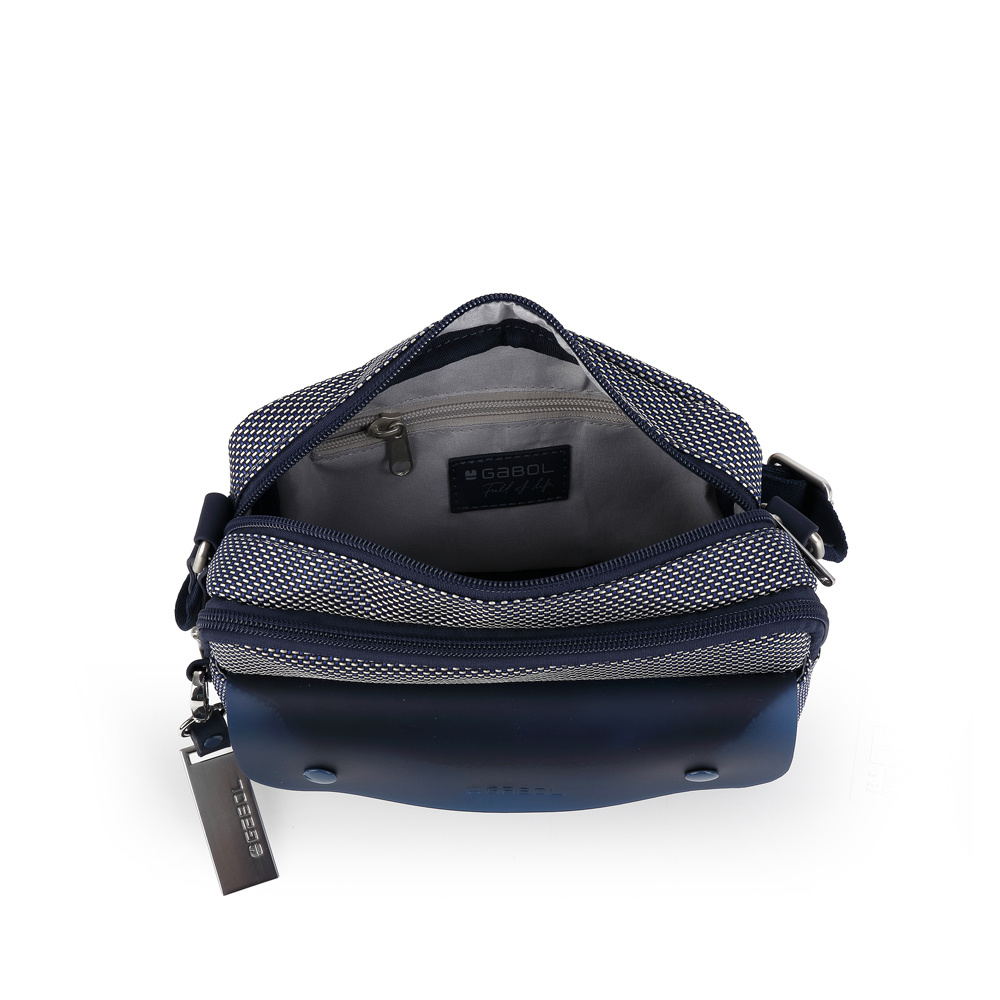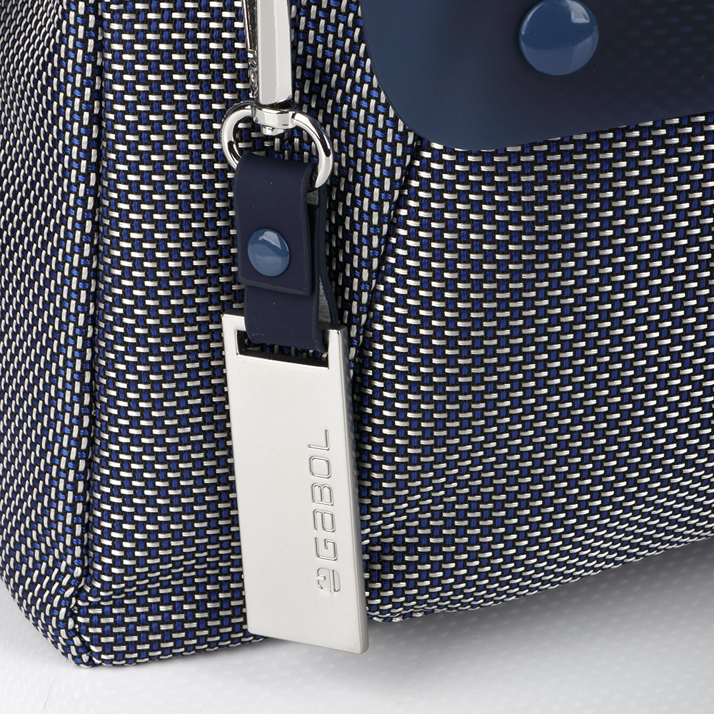 Moderna Gabol ženska torba donosi inovativan pristup urbanom dizajnu kroz spoj specifičnih tekstura i funkcionalnih detalja. Izrađena je od čvrstog, pletenog materijala u teget-beloj kombinaciji, što joj daje prepoznatljiv vizuelni identitet i visoku otpornost na svakodnevnu upotrebu. Prednju stranu krasi atraktivan polutransparentni teget džep sa dekorativnim dugmićima, koji torbi daje savremen izgled. Pored prostranog glavnog odeljka, torba poseduje i praktičan zadnji džep sa patent zatvaračem za bezbedno čuvanje najvažnijih sitnica. Podesivi tekstilni kaiš osigurava udobno nošenje preko ramena, dok elegantni metalni privezak sa logotipom brenda upotpunjuje njenu estetiku. Ovaj model je savršen izbor za korisnice koje traže balans između sportske elegancije i praktičnosti za dinamičan život u gradu.