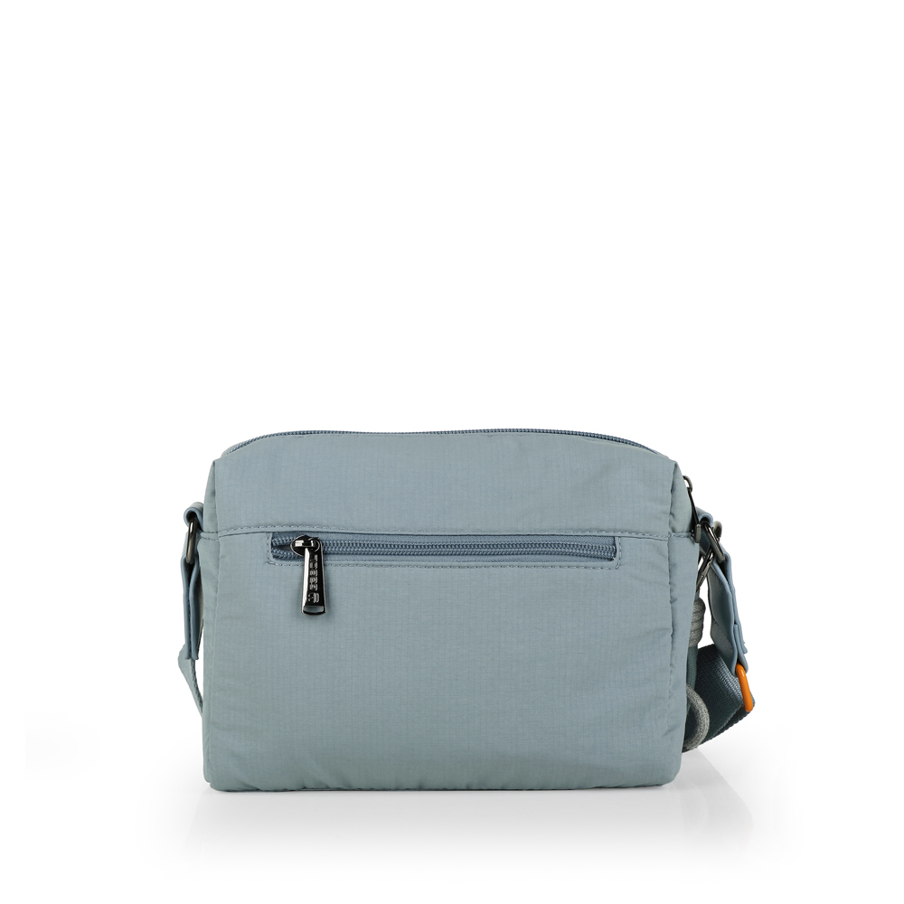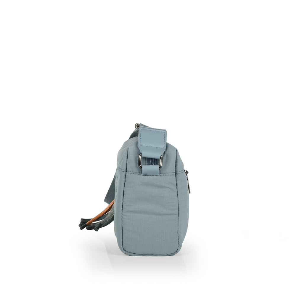 Moderna Gabol torba, spaja sportsku eleganciju i vrhunsku praktičnost za svakodnevnu upotrebu. Izrađena od laganog i specijalnog vodootpornog materijala u diskretnoj plavo-sivoj nijansi, ova torba garantuje zaštitu ličnih stvari u svim vremenskim uslovima. Dizajn je osvežen atraktivnim priveskom od upletenih kanapa sa narandžastim akcentima, koji u kombinaciji sa podesivim remenom pruža maksimalnu udobnost i stil. Pored prostranog glavnog odeljka, torba poseduje i praktičan zadnji džep sa patent zatvaračem, čineći je idealnim rešenjem za korisnice koje traže izdržljiv, siguran i estetski prepoznatljiv aksesoar za dinamičan gradski život.