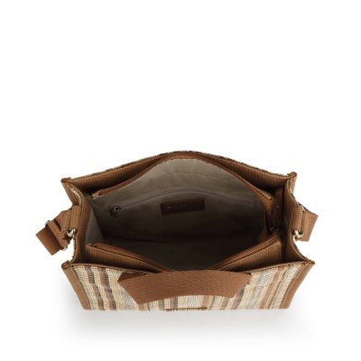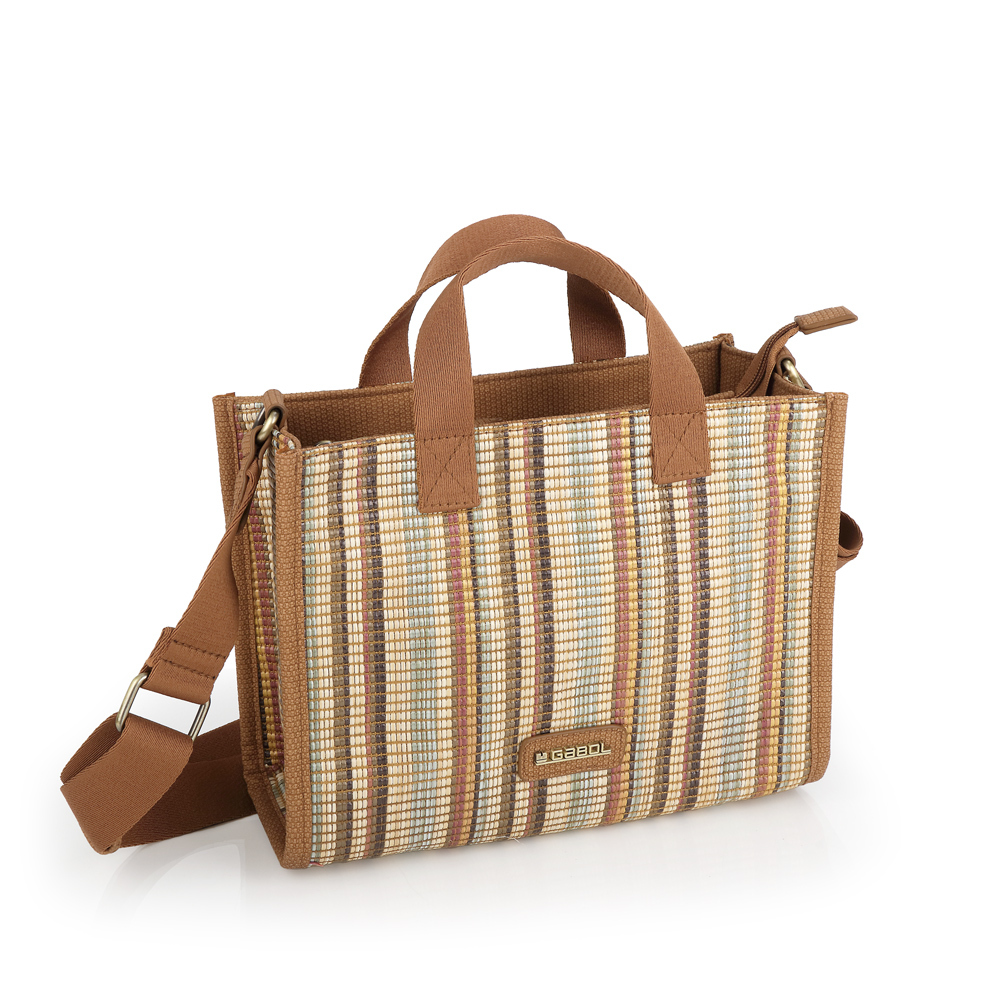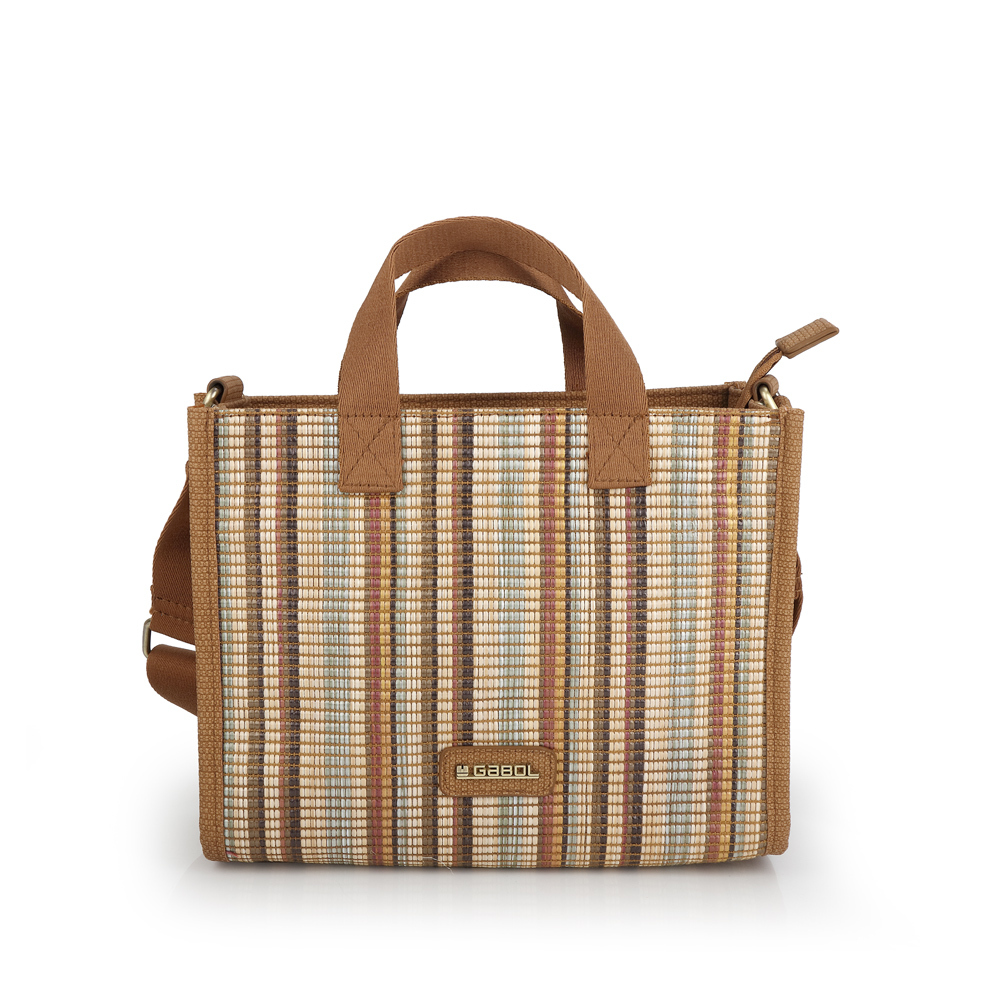 Ova svestrana Gabol torba nudi savršen balans između funkcionalnog i praktičnog. Prepoznatljiva je po modernom dezenu sa višebojnim vertikalnim prugama u prirodnim tonovima, izrađenim od izdržljive teksturisane tkanine koja verno dočarava izgled rafije. Torba poseduje dvostruke ručke za nošenje u ruci i podesivi, široki tekstilni remen za nošenje preko ramena, pružajući maksimalnu fleksibilnost u svakoj prilici. Glavna pregrada sa patent zatvaračem, unutrašnji organizator sa dodatnim džepom i praktična spoljna pregrada na zadnjoj strani omogućavaju besprekornu organizaciju sitnica. Zahvaljujući laganim materijalima i toploj paleti boja, ovaj model je idealan izbor za letnje gradske šetnje ili opuštene poslovne kombinacije.