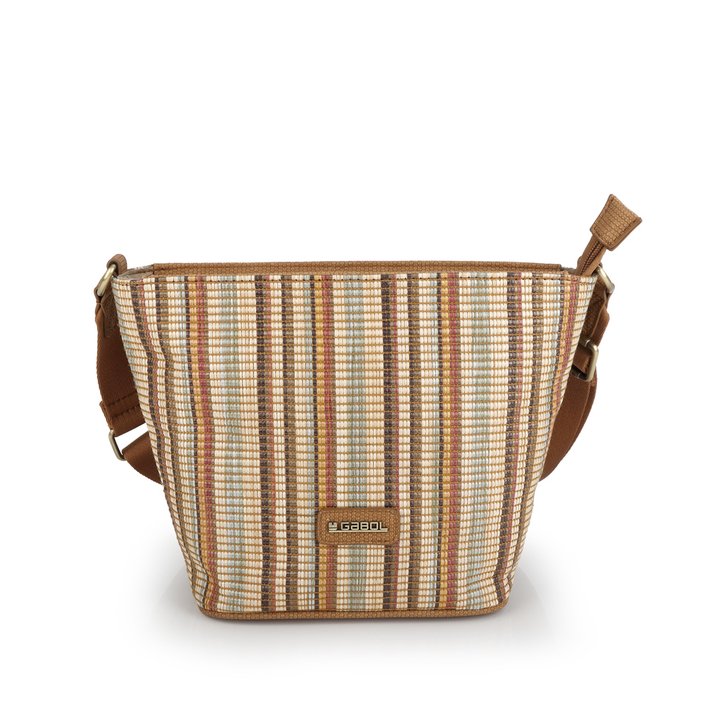 Gabol torba koja donosi moderan i prepoznatljiv prugasti dizajn u praktičnom, blago trapezastom obliku. Izrađena od izdržljive tkanine sa teksturom rafije u višebojnim vertikalnim prugama, ova torba savršeno kombinuje letnju estetiku sa funkcionalnošću za svakodnevnu upotrebu. Glavna pregrada sa patent zatvaračem nudi dovoljno prostora za sve osnovne stvari, dok dodatni zadnji džep sa rajsferšlusom omogućava bezbednu i brzu dostupnost najbitnijih sitnica. Podesivi, široki tekstilni remen u braon boji pruža udobnost i omogućava prilagođavanje različitim stilovima nošenja. Uz diskretni metalni logotip i unutrašnjost sa dezeniranom postavom, ovaj model predstavlja stilski siguran izbor za letnje šetnje i gradske aktivnosti.