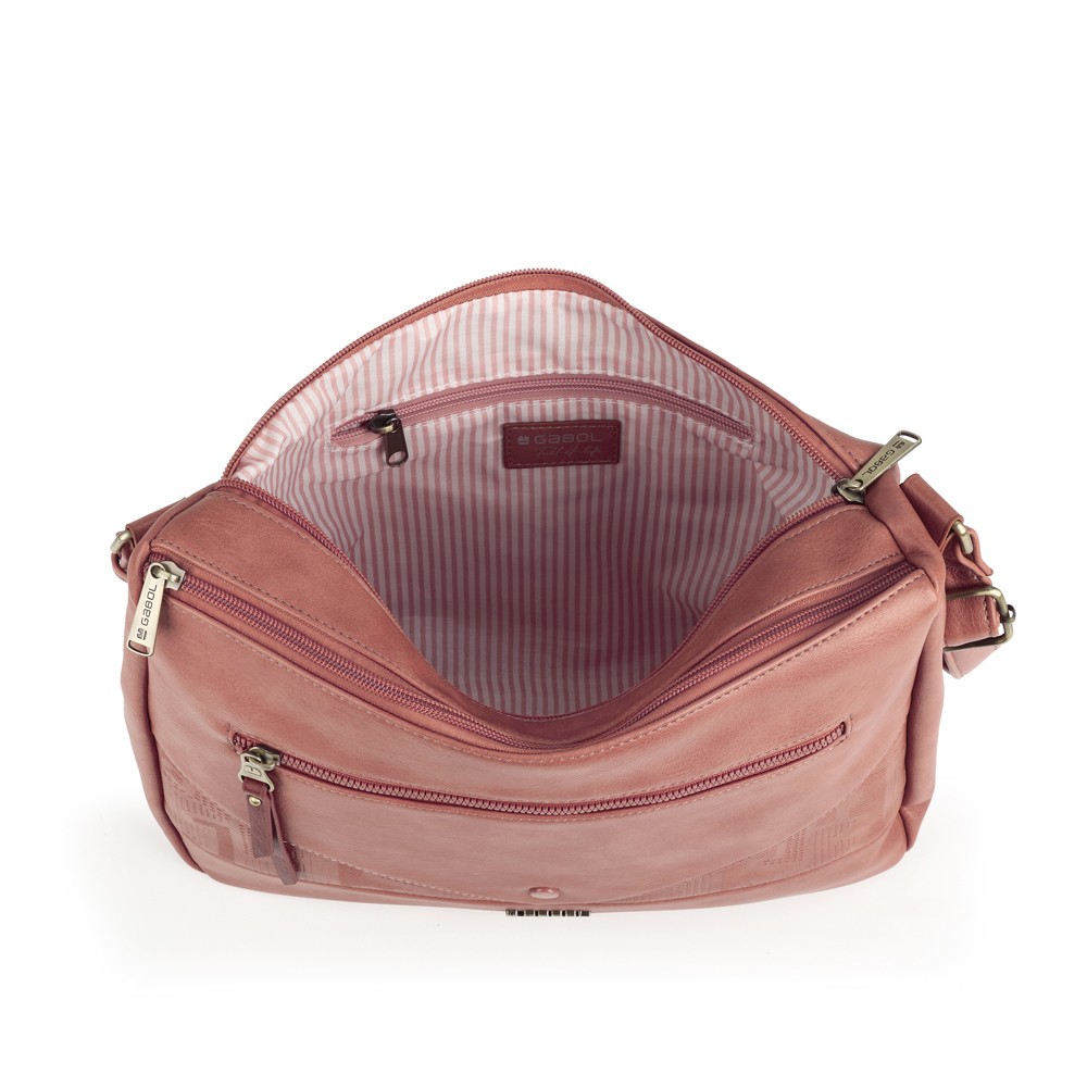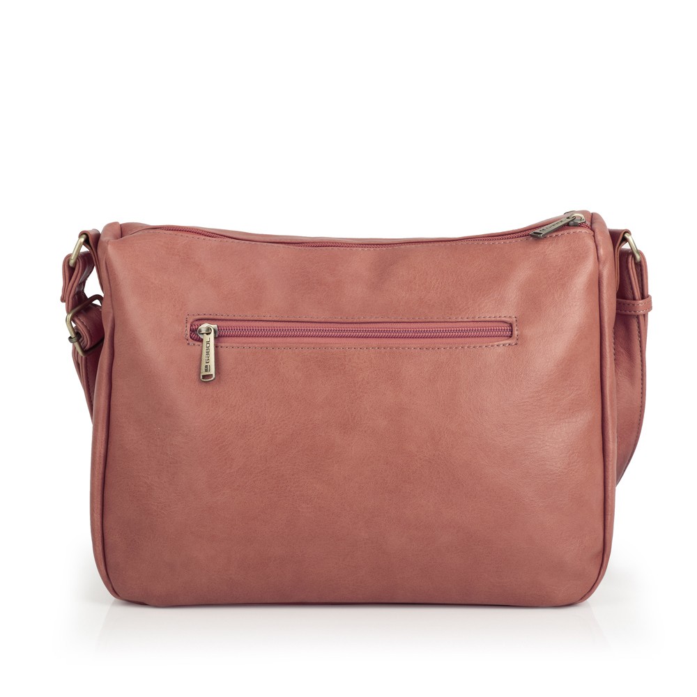 Elegantna ženska torba od sintetičke kože, bez "PVC" primesa. Solidnog smeštajnog prostora dok, u unutrašnjem prostoru postoji manji džep sa zipom, kao i sa zadnje stranje. Modernog dizajna i boje. Za lakši pristup telefonu,ili ključevima možete koistiti manji džep na predjoj strani.