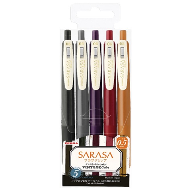 Roler gel 0,5mm sa gumenim gripom Sarasa Clip Vintage2 pk5 Zebra 69421 sortirano