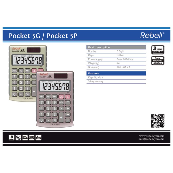 Kalkulator džepni 8mesta Rebell RE-POCKET 5G beli