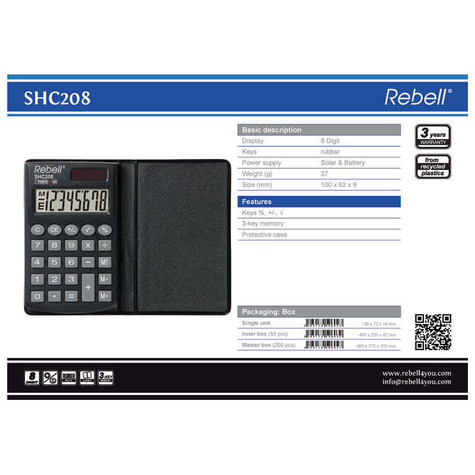 Kalkulator džepni 8mesta sa preklopom Rebell RE-SHC208 BX crni