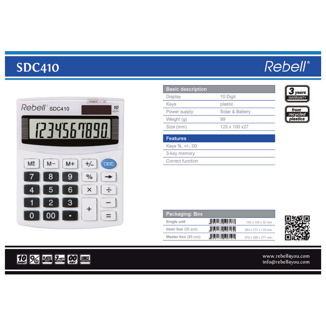Kalkulator komercijalni 10mesta Rebell RE-SDC410 BX beli