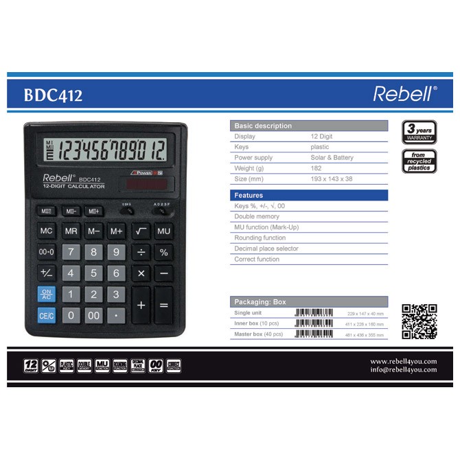 Kalkulator komercijalni 12mesta Rebell RE-BDC412 BX crni