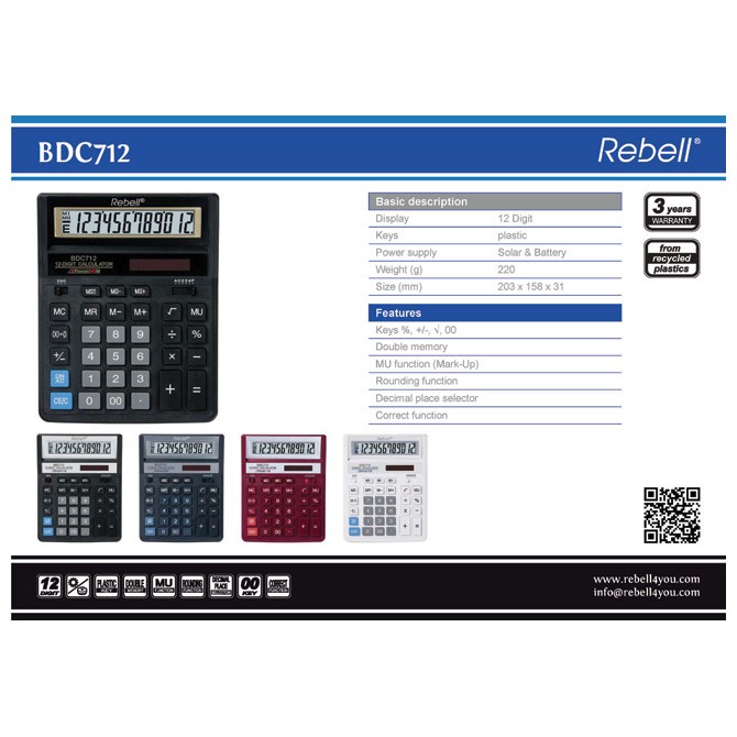 Kalkulator komercijalni 12mesta Rebell RE-BDC712GL BX crni