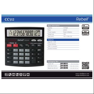 Kalkulator komercijalni 12mesta Rebell RE-CC512 BX crni