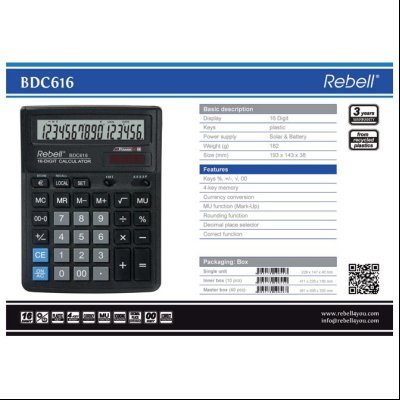 Kalkulator komercijalni 16mesta Rebell RE-BDC616 BX crni
