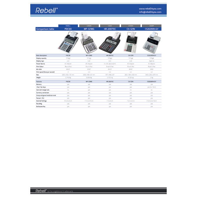 Treba ti Računska mašina 12mesta sa adapterom Rebell RE-PDC30 WB bela? U Arhimed online prodavnici te čekaju Digitroni i Kalkulatori odličnog kvaliteta. Pogledaj online!